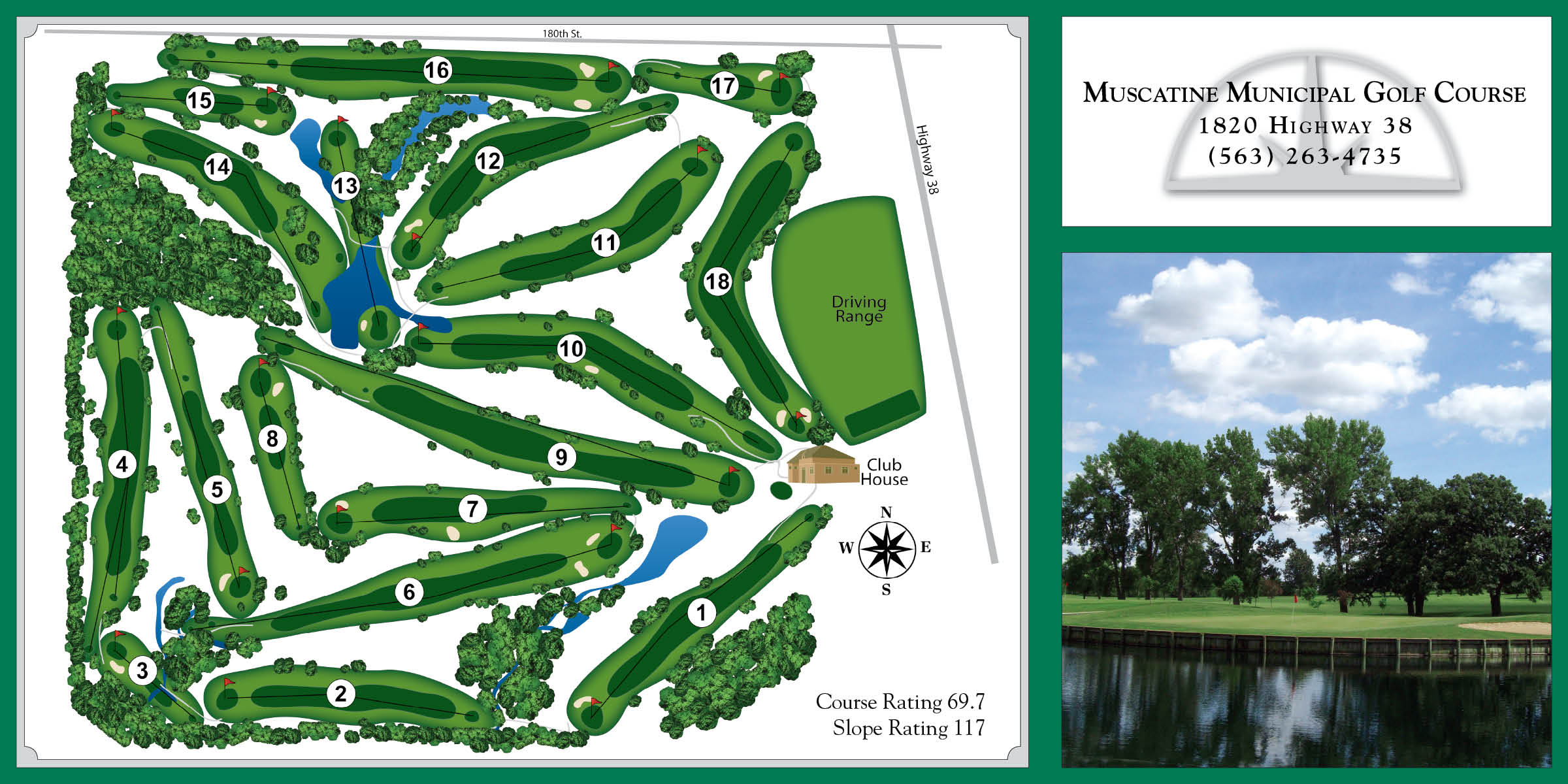The Muscatine Municipal Golf Course is currently closed for play with an opening date for the 2026 season to be announced in March 2026. The Clubhouse remains open for event rentals, golf lessons, and stocking up on necessities from the Pro Shop.